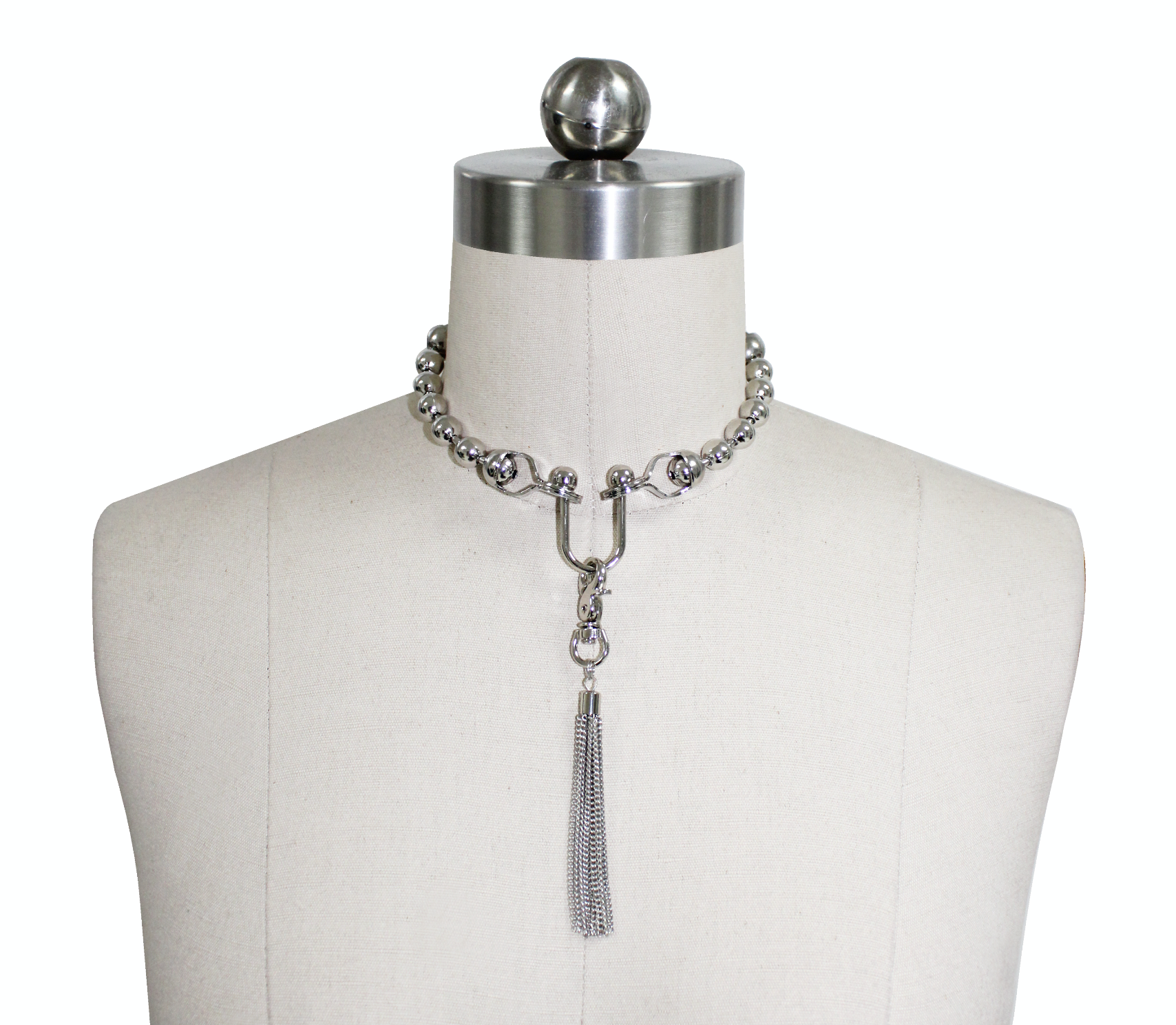 Ball chain choker with detachable tassel.