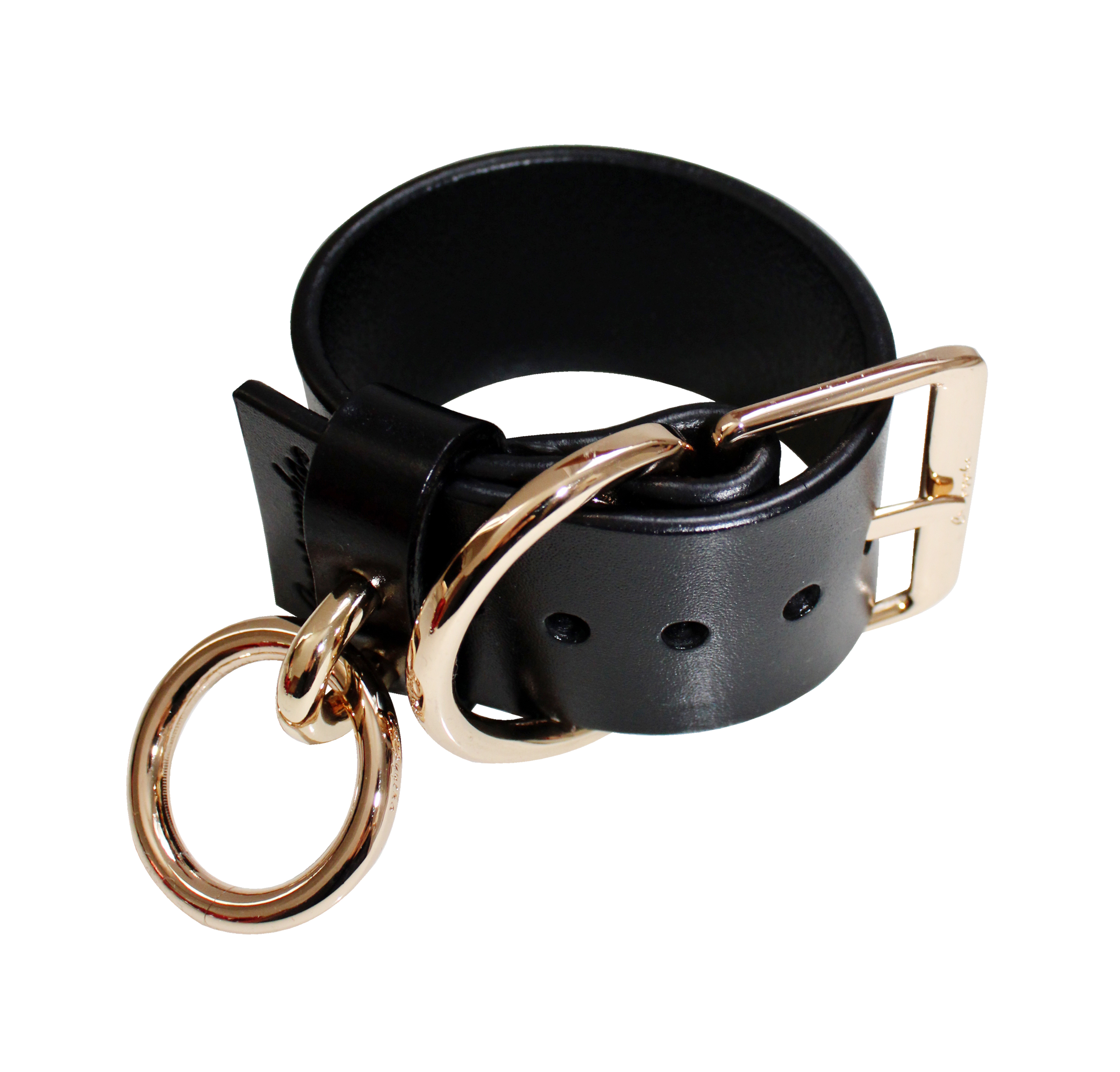 Thick leather base with adjustable buckle closure and O ring